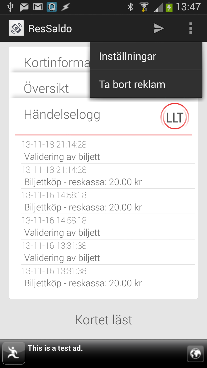 Appen läser informationen direkt från kortet. Den kommer inte alltid att överensstämma med saldot du ser om du loggar in på webben. T.ex. för Västtrafik tar det upp till 48 timmar innan saldot uppdateras på webben, saldot på kortet uppdateras direkt. På motsvarande sätt kan man ladda sitt kort via nätet i bl.a. Skåne, då kommer webbsaldot att visa det påladdade beloppet, men kortets saldo uppdateras först när du interagerar med en kortläsare.